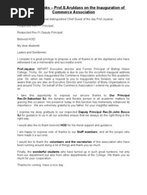 Vote Of Thanks Prof S Aruldass Assistant Professor Of Commerce Sjc Trichy 2 Pdf